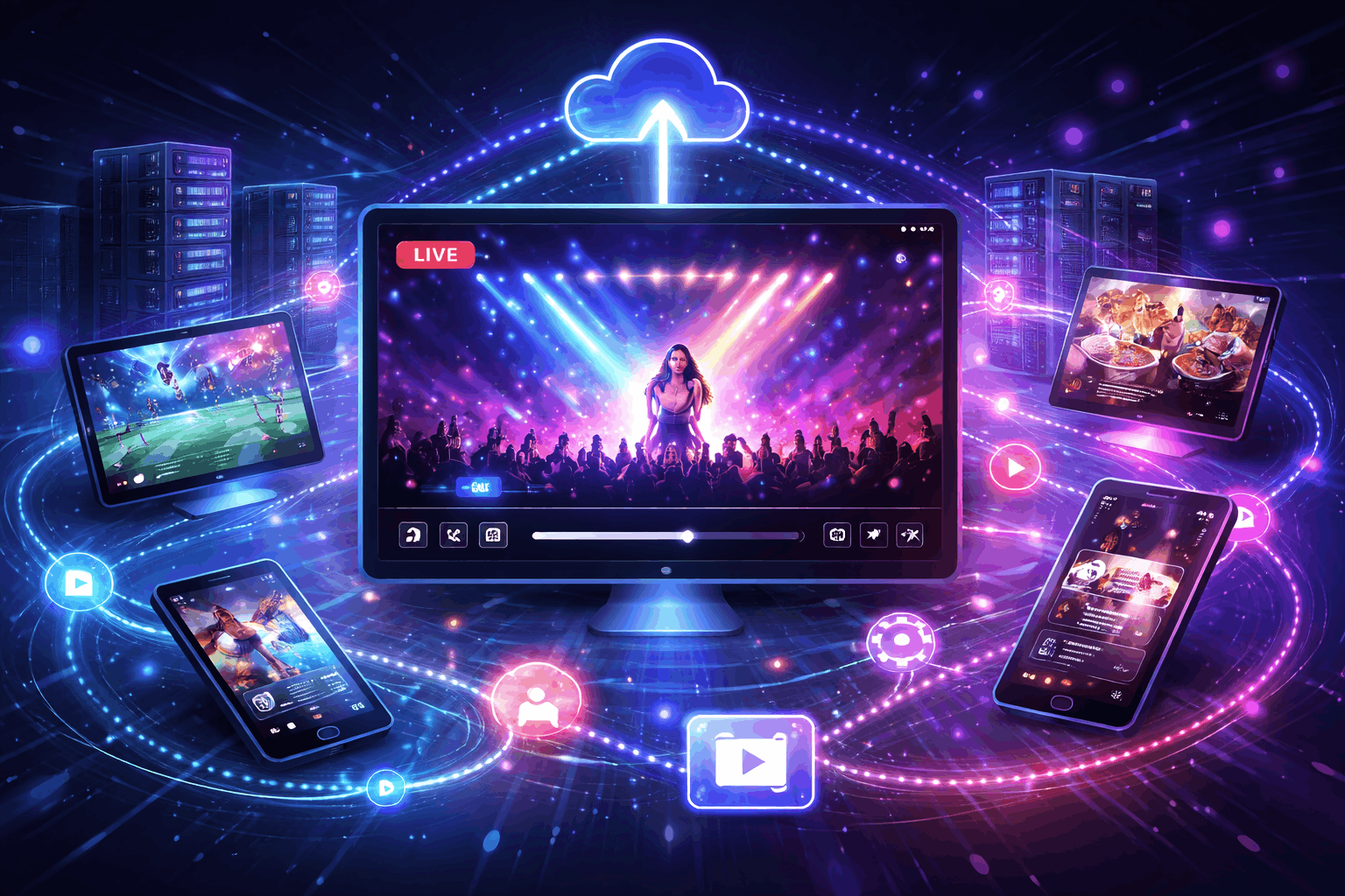 Built on AWS with adaptive bitrate streaming to support high-volume global broadcasts and concurrent live streams.